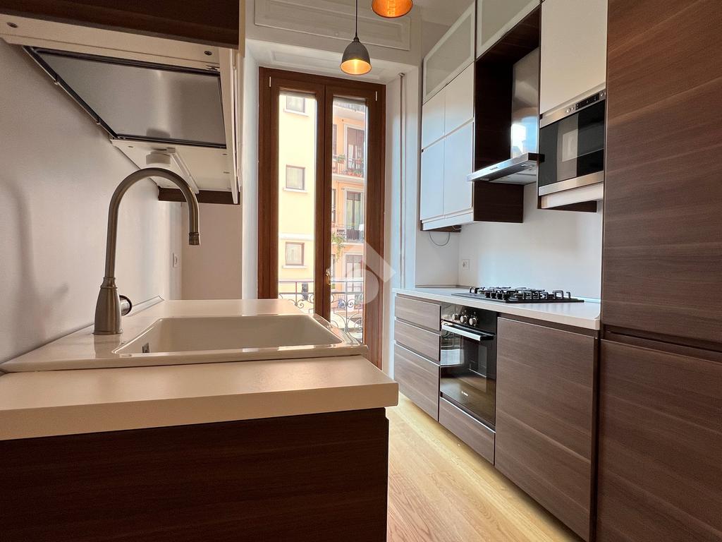 VIA FILARETE - All'interno di un elegante stabile d'epoca sito in una delle vie più esclusive della zona, a due passi dall'Arco della Pace e Parco Sempione, proponiamo in locazione un esclusivo tre locali di 96mq. L'immobile, sito al primo piano con ascensore è così composto: ingresso su un comodo disimpegno, cucina semi abitabile arredata con accesso ad un balcone, soggiorno con affaccio esterno, due camere e due bagni. L'appartamento viene consegnato solo con cucina e bagni arredati. Riscaldamento Autonomo e predisposizione impianto aria condizionata. Libero dal 01/08/2025.